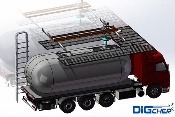 5、軌道式自動化清洗執行機構,在罐(guàn)口封閉條件下完成(chéng)對罐內的自動化清洗,清洗汙水通過罐車排放口(kǒu)排入指定區域或通道;