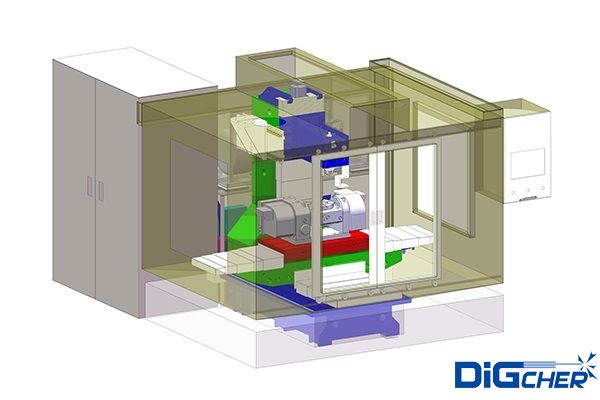 機床部分:使用BT40通用刀柄作為(wéi)高壓水噴頭載體,配以自動刀庫換刀係統。高精度電腦數控分度盤提高加工精度和加工效率。