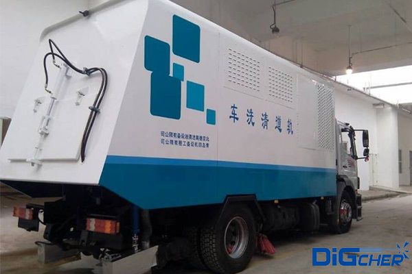 車載電氣控製係統采用西門子PLC控製,微機支持觸(chù)控操作,在車輛進行(háng)清洗作業時,微(wēi)機控製(zhì)係統可根據需要(yào)切換不同的清(qīng)洗模式。清洗模式包括高壓水清洗、盤刷清掃和負壓吸(xī)塵等,這幾種功能可以設置成(chéng)搭(dā)配組合或單一來運行。